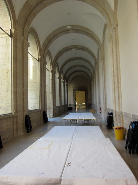 This morning on our side of the "claustro" in the Museo Patio Herreriano (as opposed to Satoshi Kitamura's side...we sit in the wing just behind the giant king and queen), we dissected a 193os coloring book with glee.